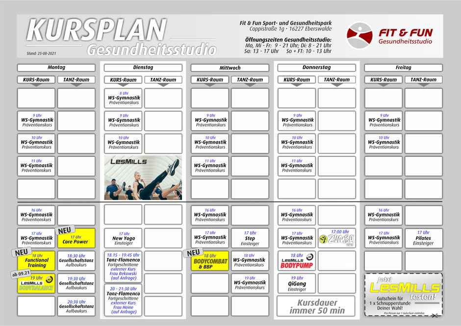Der erste Kurs ist für Neukunden als Probestunde kostenfrei.